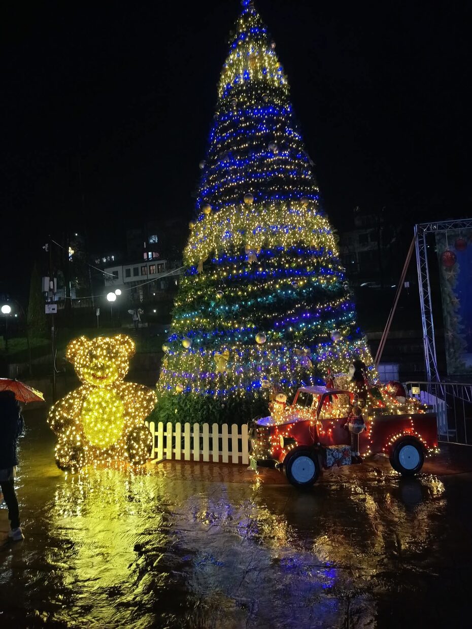 Елхата на . „Свобода“ в Смолян засия в празнични светлини въпреки проливния дъжд