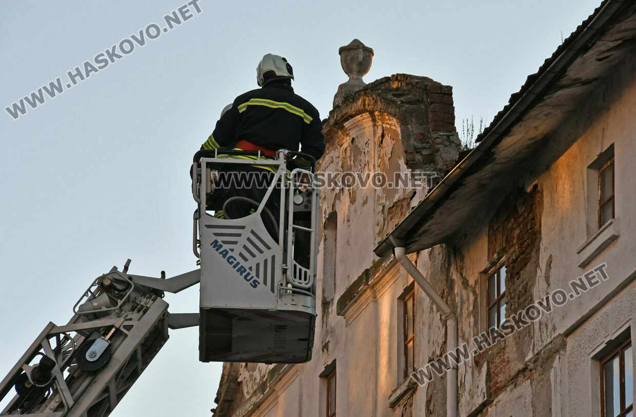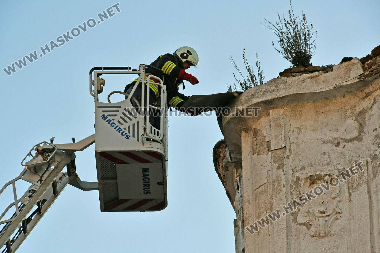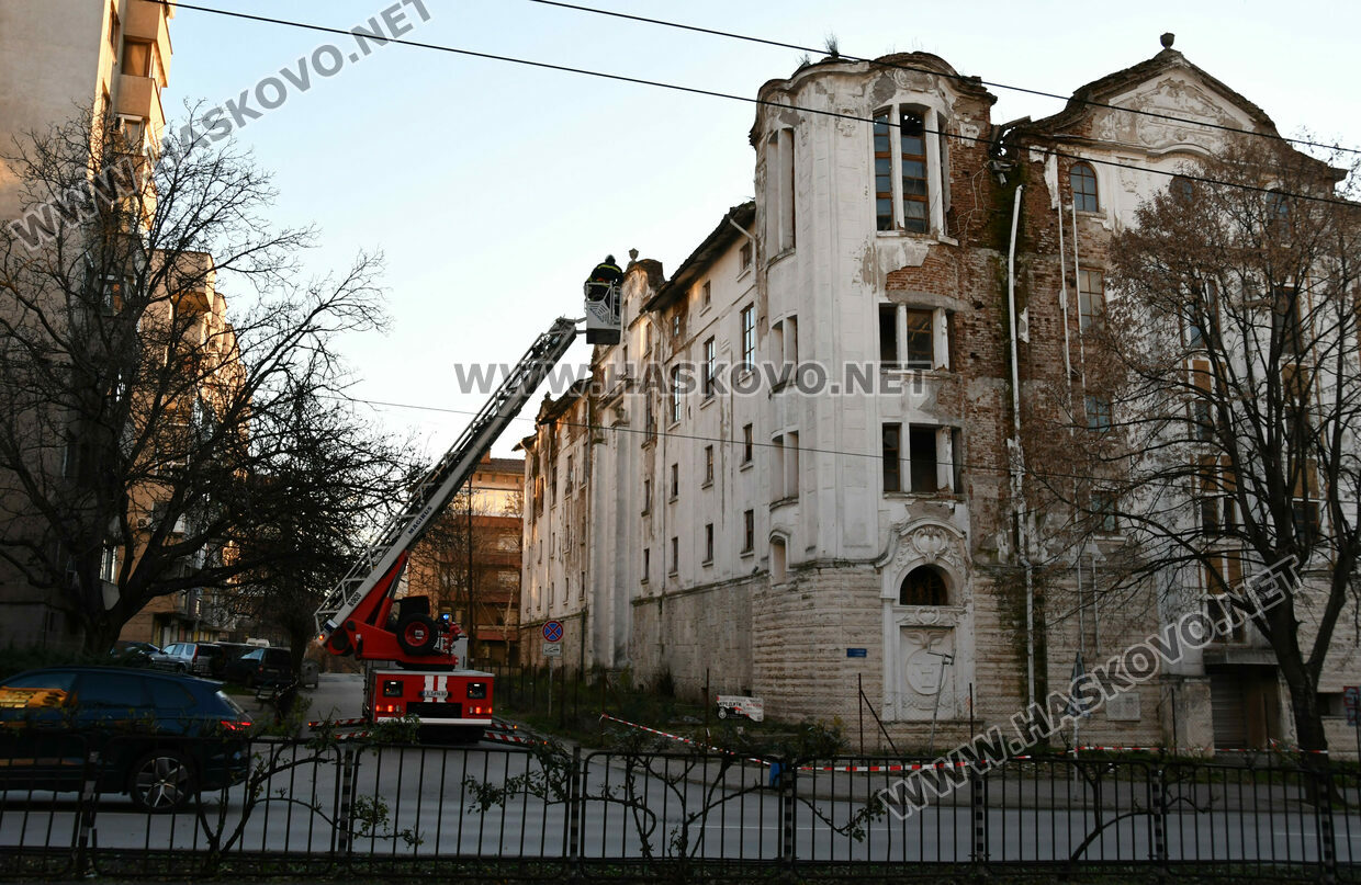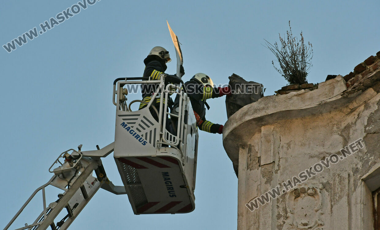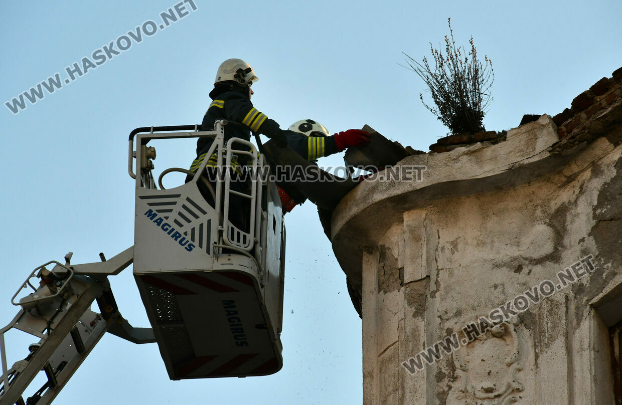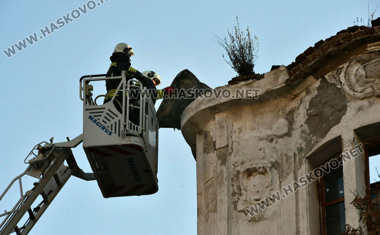 Пожарникари отстраниха опасни ламарини от покрива на бившия магазин „Марса“ в Хасково, видя екип на Haskovo.net.