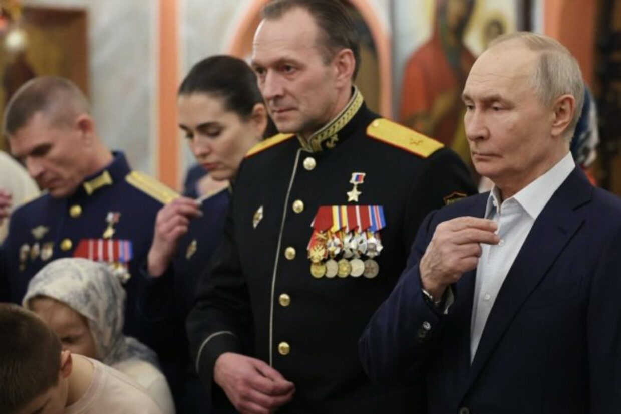 На разпространен в интернет видеоклип се вижда Путин, облечен в тъмен костюм без вратовръзка, застанал сред военни в униформа, заедно с жени и деца, докато свещеници водят службата в църквата недалече от Москва.
