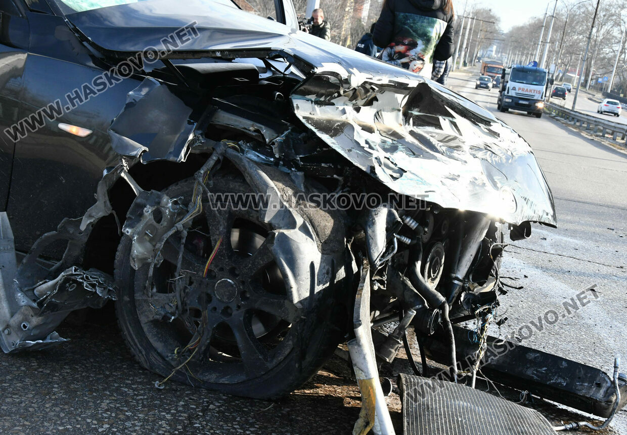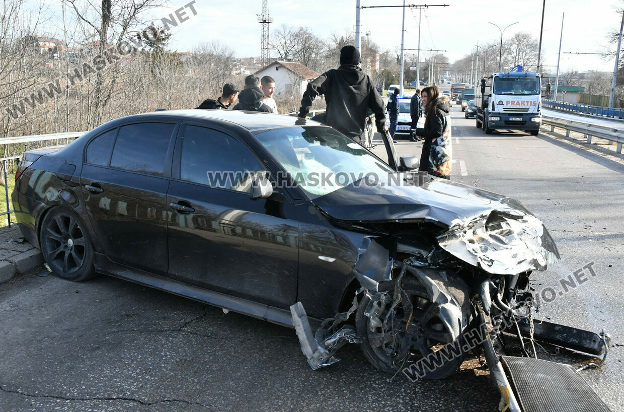 Водач на лек автомобил БМВ катастрофира на булевард „Съединение“ в Хасково. Инцидентът стана малко след 10 часа днес на надлеза до жп гарата.