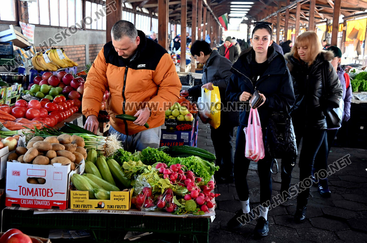 В първият ден на февруари след като законната българска валута остана само еврото, тези проблеми отпаднаха. И тогава обаче много от масите на пазара останаха празници. Днес е първият ден в тази година, когато всички обекти са отрупани със стока.  Голям наплив на търговци и клиенти има и на земеделския пазар, който се провежда пред Малкия бизнесцентър в Хасково.