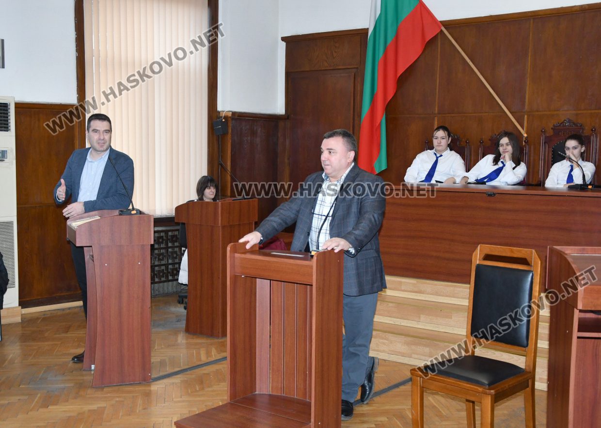 Председателят на Районен съд – Хасково Пламен Георгиев и заместник-районният прокурор на Хасково Антон Иванов разясниха пред ученици от ПГДС „Цар Иван Асен II“ – Хасково темата „Детското насилие и агресията в училищата. Наказателна отговорност на непълнолетните. Хулигански прояви на малолетни и непълнолетни лица. Възпитателни мерки спрямо деца“.