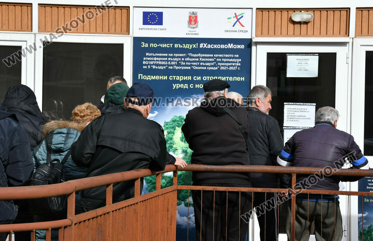 Малко преди 10 часа днес до административната сграда имаше около 50 души, които чакаха да подадат заявление за кандидатстване по проект „Подобряване качеството на атмосферния въздух в община Хасково“, финансиран по приоритет 5 „Въздух“ на Програма „Околна среда“ 2021-2027 г.