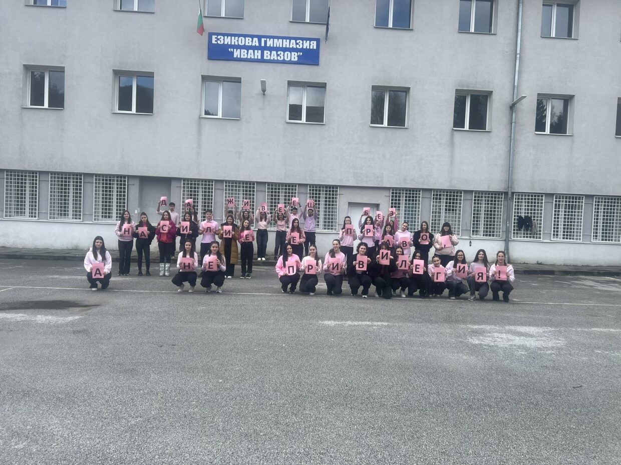 Под мотото „Да живееш без насилие е право, а не привилегия“ ученици и учители от Езикова гимназия „Иван Вазов“ отбелязаха Деня на розовата фланелка – международна инициатива, посветена на добротата, уважението и нетърпимостта към тормоза.