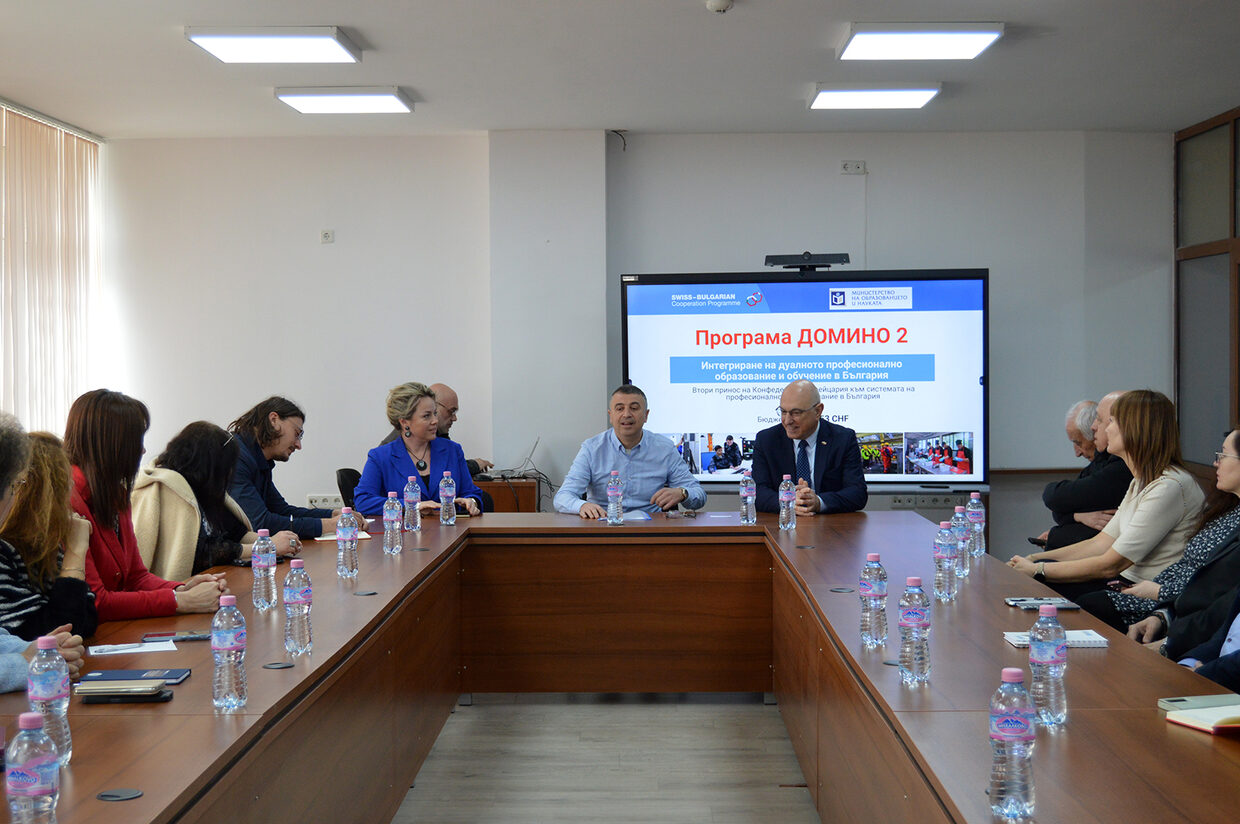 Дуалното професионално образование беше въведено в България през 2015 година, като решаваща основа за неговото прилагане допринесе успешно реализираният проект „Домино“, чийто втори етап стартира сега. Първата фаза бе подкрепена с около 3 милиона швейцарски франка, а за предстоящата са осигурени над 5 милиона.