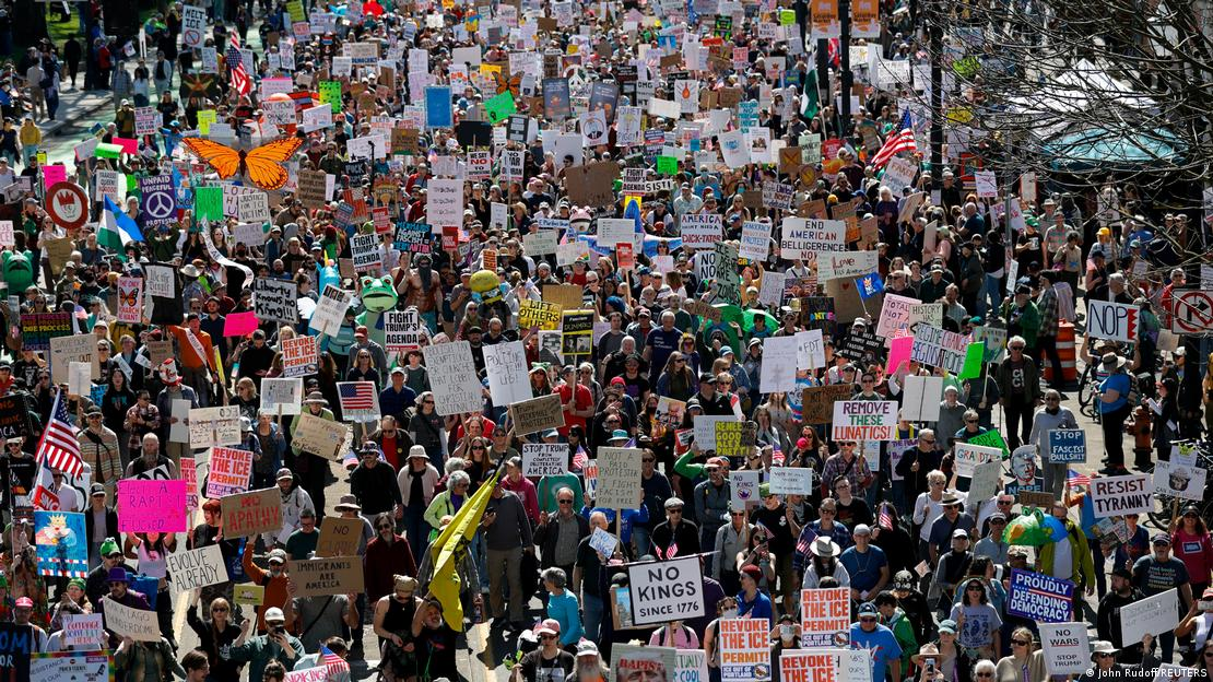 В знак на протест срещу политиката на президента Тръмп милиони американци излязоха по улиците - под мотото „No Kings“ („Без крале“).