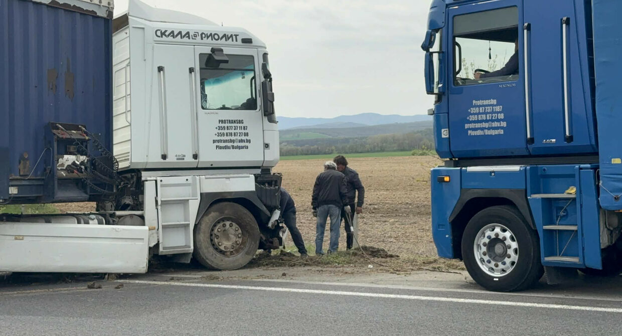 При изваждането на влекача „Рено“ с пловдивски номера движението беше спряно за кратко.