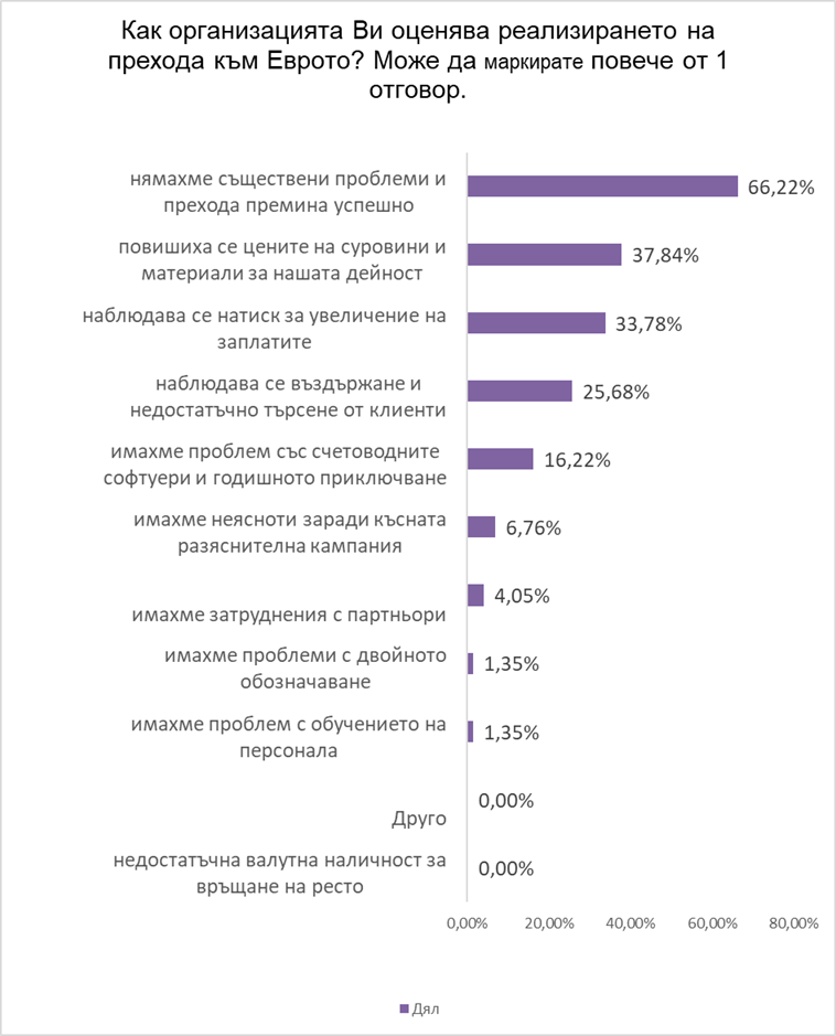 66% от фирмите, участвали в анкетата, не са имали съществени проблеми и оценяват прехода към еврото като успешен: