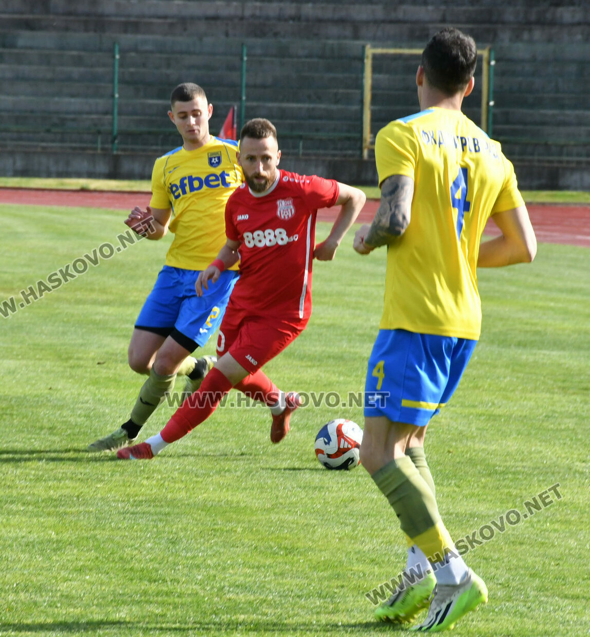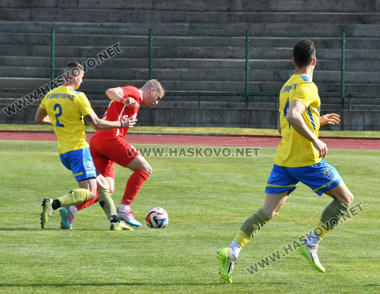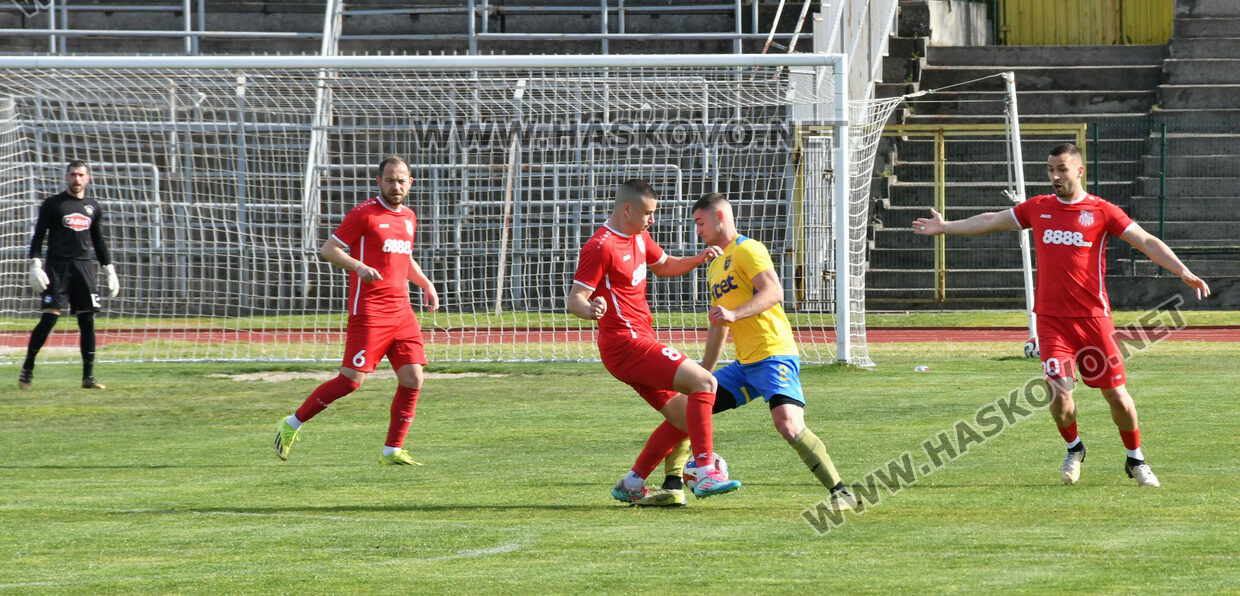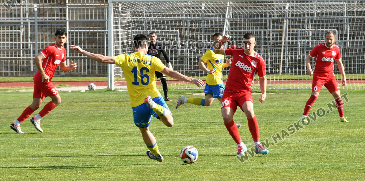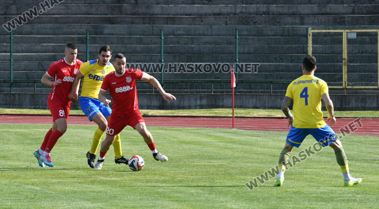 ОФК „Хасково“ спечели категорично регионалното дерби срещу ФК „Димитровград“ в среща от футболното първенство на Трета лига. Въпреки че първото полувреме завърши без отбелязани голове, домакините наложиха пълна доминация след почивката и реализираха четири безответни попадения във вратата на гостите.