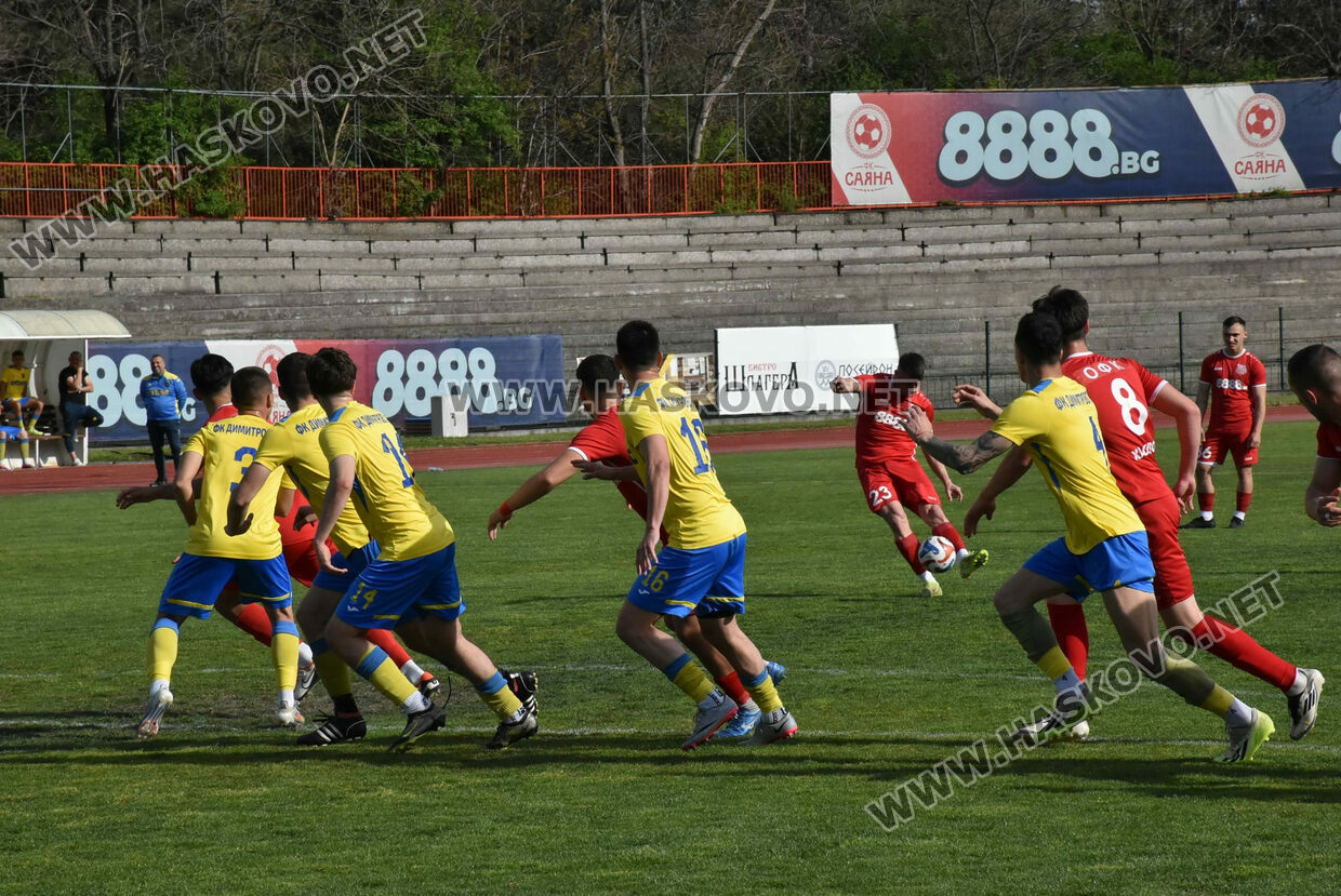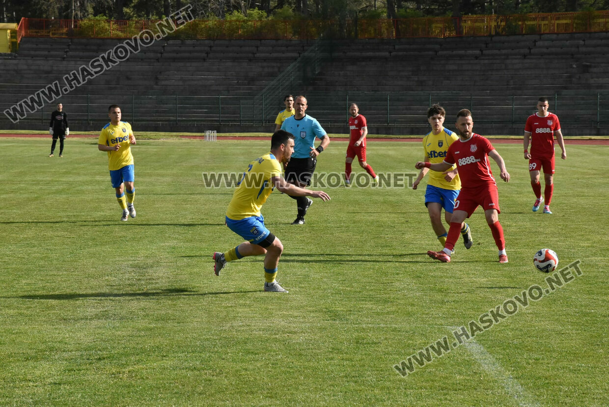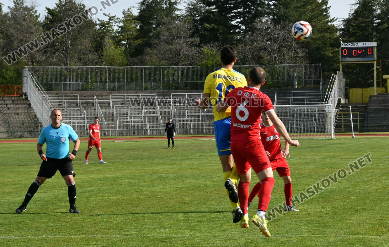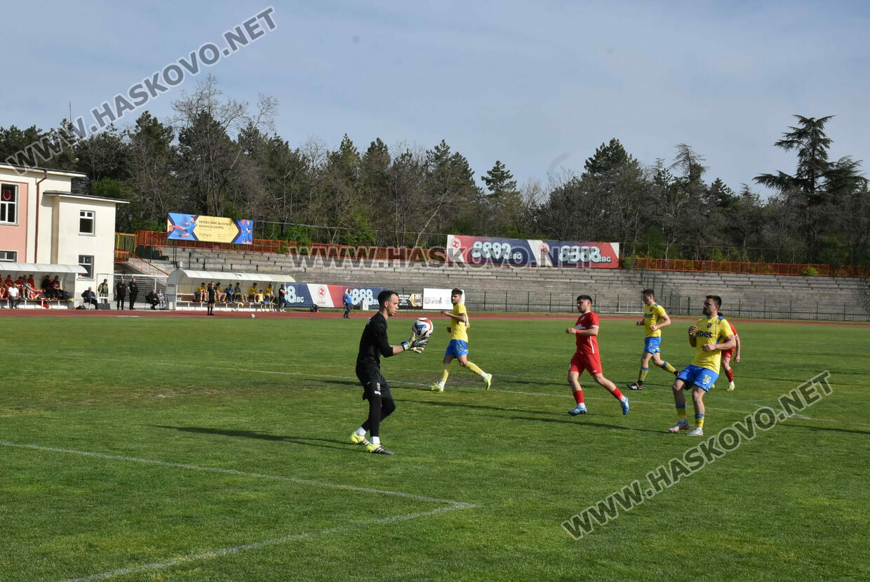 ОФК „Хасково“ спечели категорично регионалното дерби срещу ФК „Димитровград“ в среща от футболното първенство на Трета лига. Въпреки че първото полувреме завърши без отбелязани голове, домакините наложиха пълна доминация след почивката и реализираха четири безответни попадения във вратата на гостите.