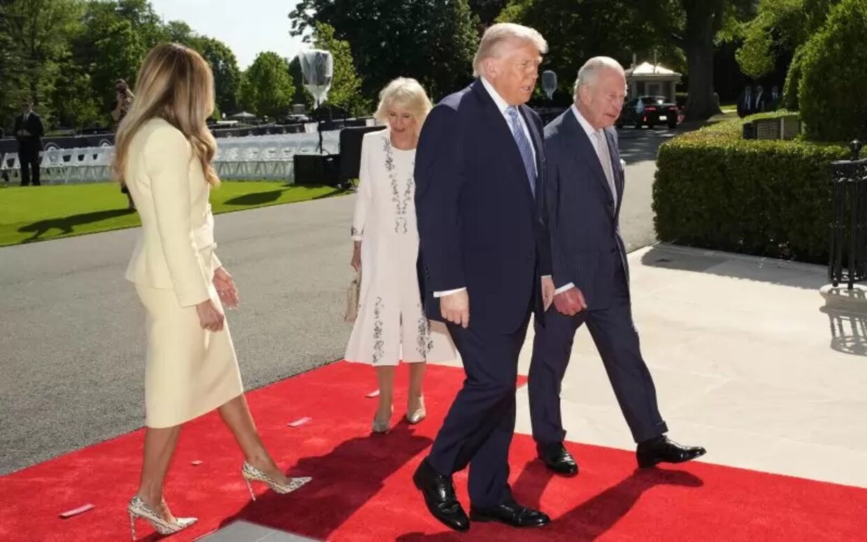 Чарлз III и Камила кацнаха в базата „Андрюс“ и се отправиха към Белия дом за частна среща с президента Доналд Тръмп и първата дама Мелания. Двете двойки пиха чай.