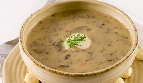 Почистваме гъбите и целината и нарязваме на ситно, което запържваме в горещото масло и заливаме с литър и половина вряща вода. Подправяме със сол и черен пипер и варим 45 мин. Застройваме с размачк...