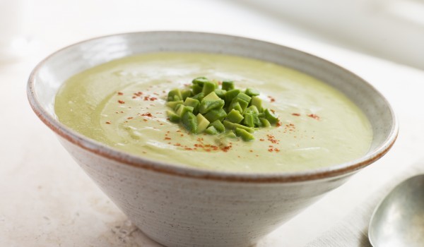 Сложете едро нарязаните тиквички и бульона да се сварят за 10 минути. Разполовете авокадото и отстранете костилката. Издълбайте вътрешността му и я сложете в блендер, заедно с киселото мляко, сваренит...