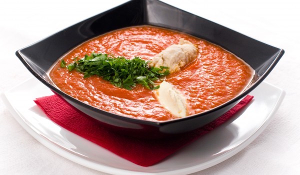 Измитите и нарязани на парченца домати се заливат с бульона. Варим до пълното им омекване, след което се пресоват. Успоредно от маслото и брашното се прави светла запръжка, която се разрежда с бульо...
