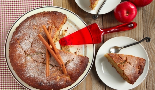Замесва се тесто от изброените продукти и се държи за 30 минути в хладилник, завито в свежо фолио. Почистените ябълки се нарязват на парчета. Поставят се в тавичка, поръсват се със захарта, добавя се...