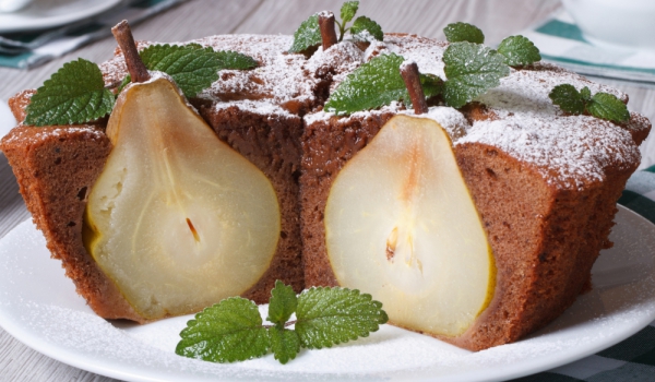 Брашното се пресява заедно с какаото, канелата и содата. Добавя се солта и захарта и се разбърква. Добавя се оцетът, олиото и водата. Разбърква се. Орехите се режат на едро. Добавят се в тестото. Кру...