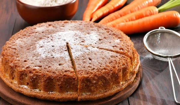 Морковите се настъргват и се напръскват с лимонов сок. Добавят се смлените орехи и лешници и се разбърква. Брашното се смесва с нишестето и бакпулвера. Яйцата се разбиват със захарта до пяна, добавят...