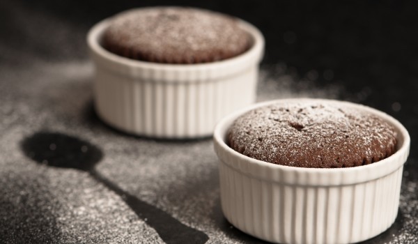 Натрошете шоколада и го разтопете заедно с маслото на водна баня, като се разбърква непрекъснато. Яйцата се разбиват със захарта на пяна, след което се прибавят шоколадовата смес, брашното и какаото....