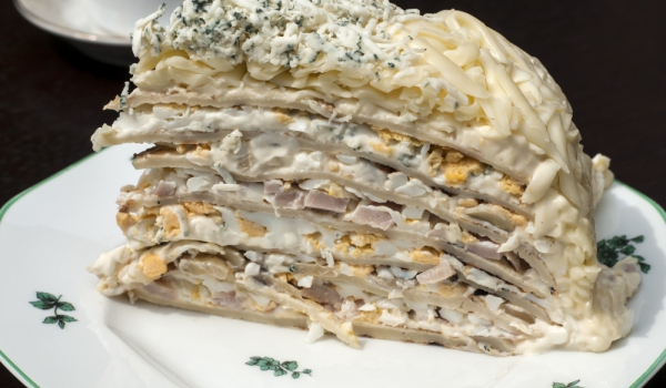 Рибата се нарязва на ситно. Смесва се с половината сметана и с горчицата и се разбива с блендер. Добавя се сол и се оставя в хладилника. Яйцата се разбиват на пяна, добавя се останалата сметана. Доба...