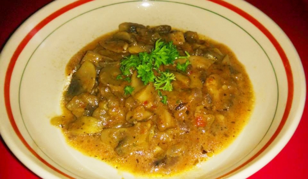 Нарежете или смелете лука и чесъна и ги запържете в зехтин за около 3 минути. Добавете нарязаните гъби, разбъркайте и гответе на среден огън 5 - 10 минути или докато гъбите се покрият почти изцяло в с...