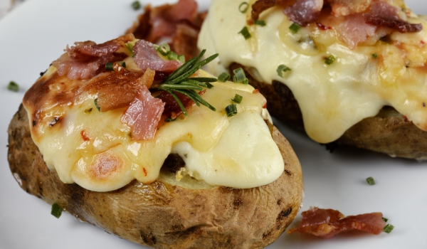 Измийте добре картофите и ги сложете да се пекат до омекване. Разрежете ги на две половини и ги издълбайте внимателно с лъжица. Напълнете ги със смес, предварително приготвена от нарязаната на ситно...