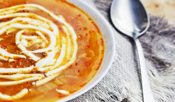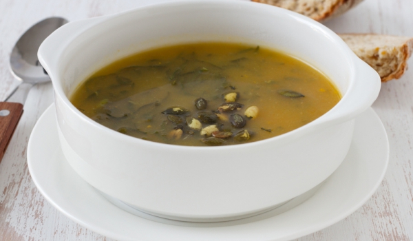 Зеленчуците се нарязват на дребно и се задушават в мазнината. Добавя се нарязаният на ситно чесън, доматеното пюре и всичко се залива с бульона. Когато зеленчуците омекнат, супата се подправя с черн...