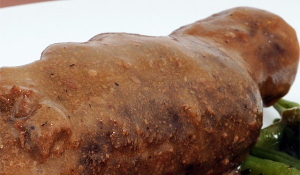 Чесънът се нарязва на малки пръчици. Месото се набожда с остър нож и в получените дупчици се набожда чесънът. Поръсва се със сол и пипер, слага се в тавичка и се намазва с маслото. Слага се да се пече...