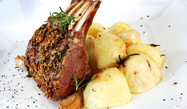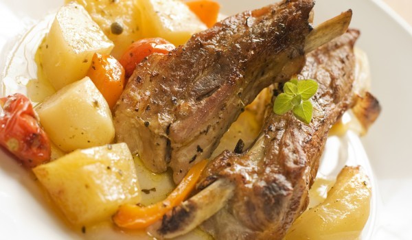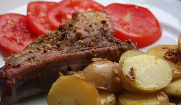 Ребрата се нарязват на порции. Смесват се стритите на прах листенца розмарин и мащерка с червения и черния пипер. Месото се поръсва с направената от подправките смес. Ребрата се поставят в тавичка,...