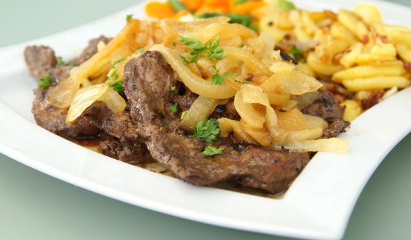 Изпържете нарязания на парченца лук до пожълтяване. Нарежете черния дроб на парчета, изпържете го в сгорещеното олио. Смесете го с изпържения лук, залейте с виното. Оставете да се задушава за малко,...