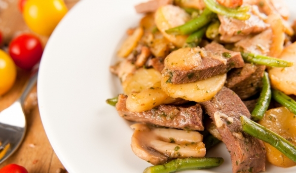 Сварете езика в тенджера под налягане с карамфила, зърната черен пипер и дафиновите листа. Охладете го след това, обелете и нарежете на филийки. Обелете картофите и ги нарежете също на филийки. Кипнет...