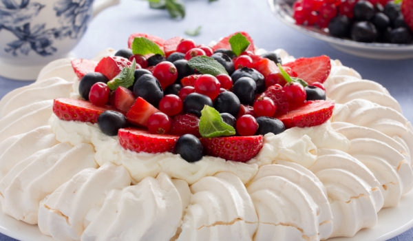 Загрейте фурната на 180 С. Разбъркайте яйчените белтъци заедно с 2/3 чаша пудра захар, добавете лимонената кора, канелата и останалото количество захар. Разбърквайте, докато се получи гладка смес. Вн...
