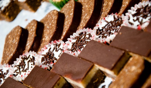Натрошете бисквитите, но не на трохи, а на по-едро. Нарежете локума на възможно най-дребни парченца. Разтопете леко маслото и залейте с него бисквитите, локума, захарта, орехите, кокоса и лъжицата ром...
