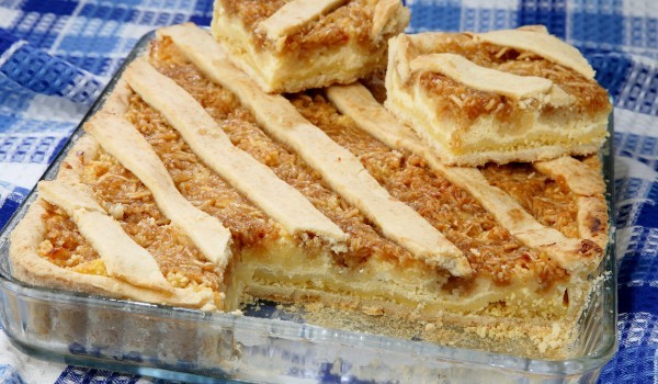 Разбийте белтъците и пудрата захар до побеляване, без да се образува пяна. Добавете смлените орехи и брашното. Разделете сместа на 5 равни части, от които се оформят 5 еднакви кръгли блата. Блатовете...