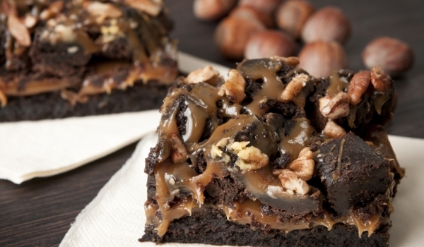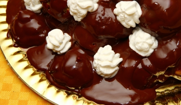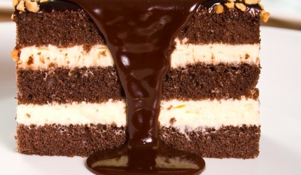 За да приготвите шоколадова заливка, кипнете в съд на котлона сметаната и захарта и добавете натрошения шоколадов кувертюр и маслото. Оставете заливката да се охлади. За карамелената заливка карамели...