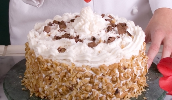 За да приготвите блатовете, разбийте белтъците на сняг, постепенно добавете към тях захарта. Трябва да се получи гъста и лъскава консистенция. Накрая сипете натрошените орехи и разбъркайте хубаво с шп...