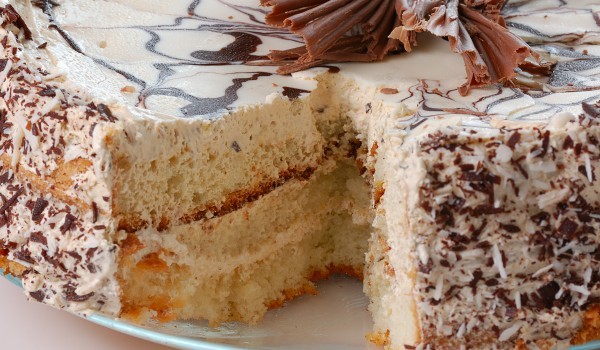 Яйцата се разбиват със захарта. Към тях се прибавят брашното с бакпулвера. Пече се блат, който като изстине се реже на 2 по-тънки блата. Цеденото кисело мляко се подслажда на вкус. Кафето по желание с...
