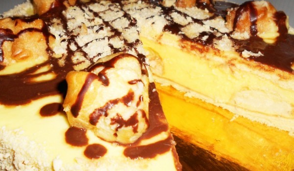 За да приготвите крема загрейте в съд на котлона сметаната с прясното млякото и захарта. Разбийте жълтъците с какаото добре и сипете млякото към тях на тънка струйка, като разбърквате. Върнете съда на...