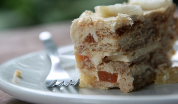 Намазнете и набрашнете тавичка или форма за печене с диаметър около 25 см. Разделете белтъци от жълтъци, и разбийте жълтъците и захарта до побеляване. Разбъркайте с пресятото брашно и най-накрая внима...
