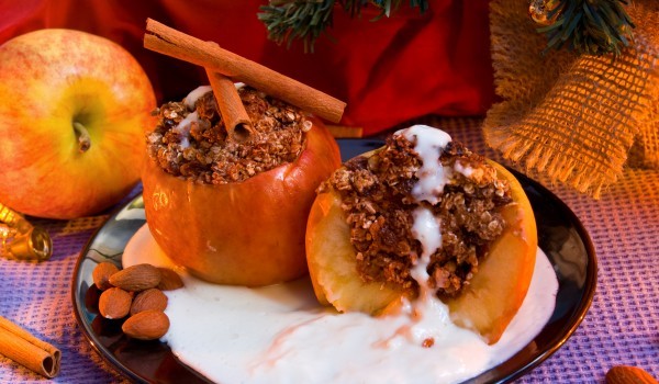 Отрежете капачета на ябълките и ги издълбайте посредата. Предварително сложете стафидите да се накиснат в малко ром, колкото да набъбнат. Може да ги накиснете и от предната вечер. Смесете количество...