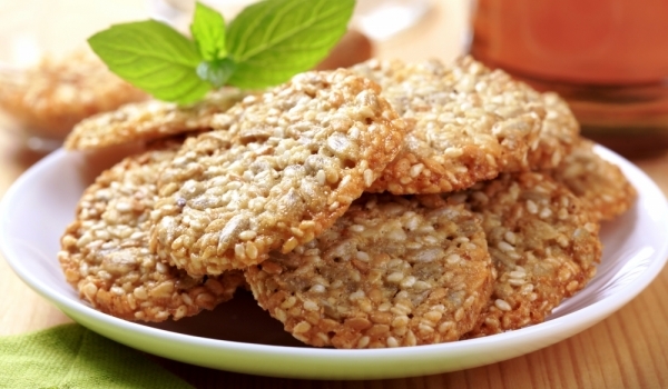 Мекото масло се разбива със захарта на пяна. Прибавят се жълтъците, брашното, ванилията, кората лимон. Оформя се тесто от което се късат топчета, които се овалват в белтък, а после в сусам. Нареждат...