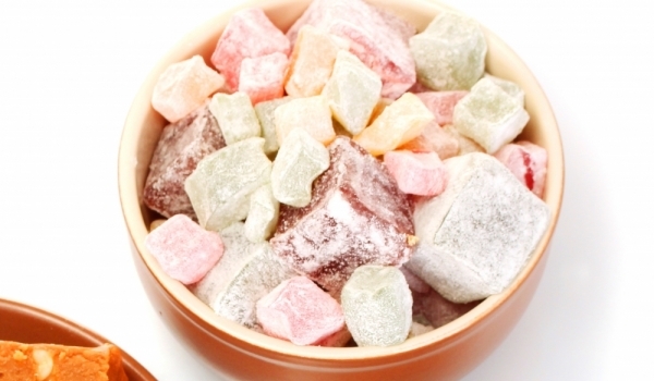 Разтворете нишестето в студена вода, прибавете захарта и варете на умерен огън при непрекъснато бъркане, докато сместа се сгъсти. Прибавете лимоновия сок, нарязаните орехи и розовата вода. Разбъркайте...