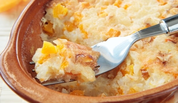 Обелете тиквата, нарежете я на ситно и запържете в масло до омекване. Сварете гриса в прясното мляко и захарта и смесете с тиквата, добре намачканата или претрита през сито извара и 5 от яйцата. Може...
