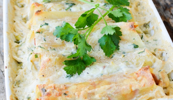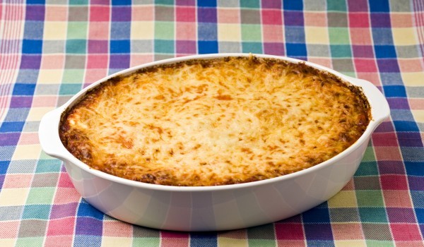 Запържете в сгорещена мазнина нарязания лук и пресования чесън. Когато омекнат прибавете доматите и бульона. Овкусете кипналия сос със сол, черен пипер и риган. Загрейте фурната до 180 градуса. Изсип...