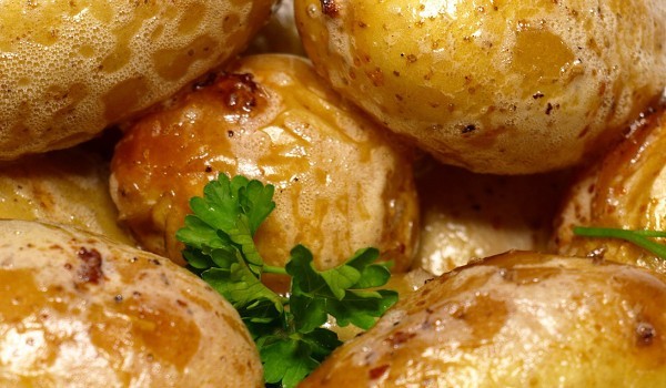 Измитите средно големи картофи се поставят в тенджера и се заливат с вода. Прибавя се необеленият чесън, розмаринът и мащерката. Тенджерата се похлупва и картофите се варят на умерен огън 20 минути...