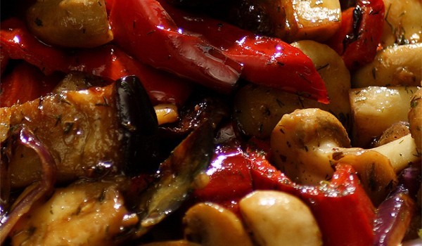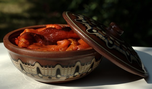 Запържете лука до златисто, прибавете картофите, нарязани на едри кубчета, след което после патладжана - също на едри кубчета. След него добавете чушките, нарязани на едро. Прибавя се брашното и под...