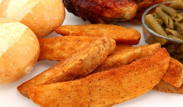 Всеки картоф се разрязва на половина по дължина, а всяка половина се разрязва на 3 парчета. Така нарязаните картофи сложете да се сварят леко (трябва да са леко твърди) с малко сол и олио. Отцедете ка...