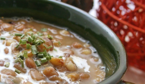 Накисвате нахута предишната вечер, ако използвате сух. При пресен не е нужно. Кипнете нахута в солена вода за 10-15 минути. Подменете водата и сварявате отново в солена вода. Зеленчуците се нарязват н...