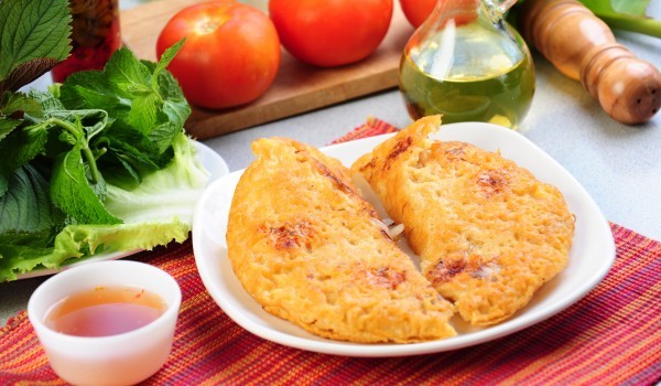 Загрейте олио в тиган. Разбийте яйцата с прясното мляко, брашното, прибавете содата, солта, черния и червен пипер. Разбъркайте добре и излейте омлета в горещата мазнина. Изпържете го леко от едната с...