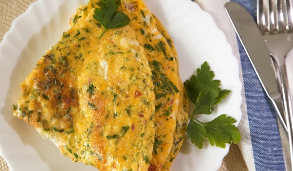 Разбийте яйцата, овкусете ги със сол и пипер, добавете към тях 1 ч.л. вода. Загрейте малко олио в тиган и сипете яйчената смес. Изпържете от двете страни и точно преди да го загърнете, сипете в него...