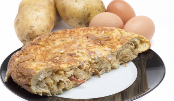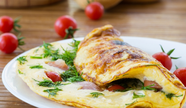Разбийте много добре яйцата, прибавете сварения картоф и нарязаната шунка. Прибавете ситно нарязаните гъби, задушени в крав масло, ситно нарязания магданоз и сол на вкус. Запържете омлета и сервирай...